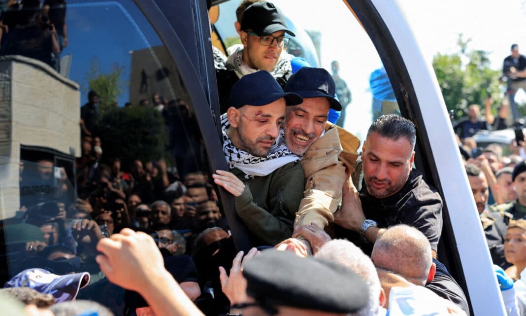 Οι Παλαιστίνιοι κρατούμενοι έφτασαν στη Ραμάλα μέσα σε κραυγές και φωνές χαράς από τις οικογένειές τους που είχαν συγκεντρωθεί. Οι γονείς τους έκλαιγαν καθώς αγκάλιαζαν τους αγαπημένους τους, ενώ άλλοι τους σήκωναν στους ώμους τους για να γιορτάσουν την απελευθέρωσή τους.