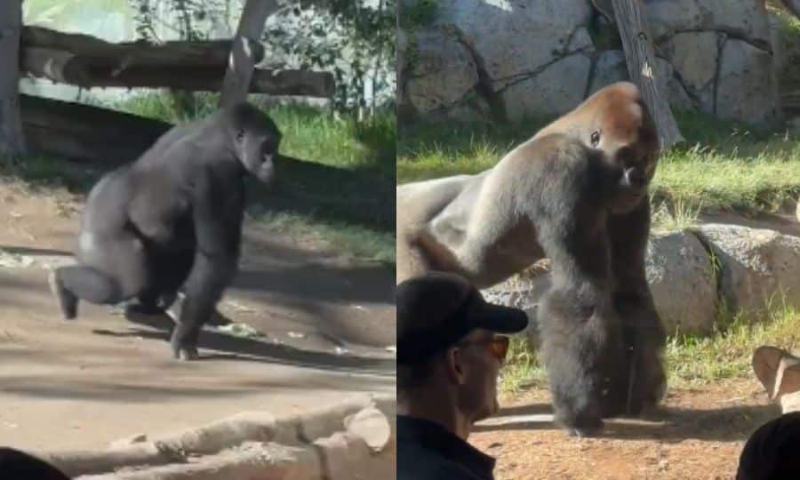 Βίντεο δείχνει έναν τεράστιο γορίλα σε ζωολογικό κήπο του Σαν Ντιέγκο να επιτίθεται στο γυάλινο φράγμα του κλουβιού του, σπάζοντας ένα από τα τρία προστατευτικά στρώματα, με τους επισκέπτες να παρακολουθούν έκπληκτοι το τρομακτικό θέαμα.