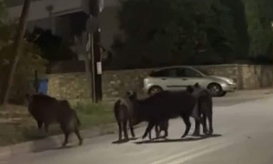 Ένα ολόκληρο κοπάδι αγριογούρουνων εμφανίστηκε σε κατοικημένη περιοχή στη Νέα Δημητριάδα, κοντά στο 8ο Γυμνάσιο Βόλου!