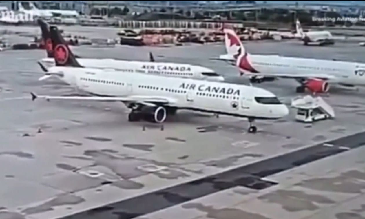 Το βίντεο δείχνει αεροσκάφος της Air Canada να προσπαθεί να σταθμεύσει σε στενό χώρο στο αεροδρόμιο Pearson, χτυπώντας δύο άλλα αεροπλάνα