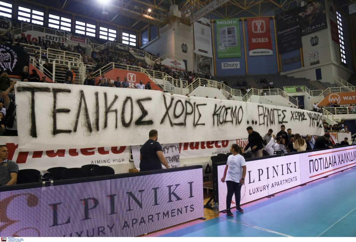 Οι οπαδοί του ΠΑΟΚ έστειλαν “απειλητικό” μήνυμα προς την Κυβέρνηση -στον δεύτερο τελικό της VolleyLeague- καθώς κρέμασαν πανό που έγραφε: “Τελικός χωρίς κόσμος, εκλογές χωρίς ψήφους”.