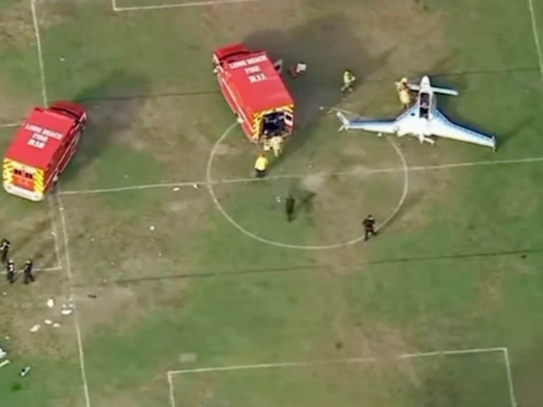 Ένα συγκλονιστικό περιστατικό σημειώθηκε το απόγευμα της Τρίτης (21/10) στο Λονγκ Μπιτς (Heartwell Park) του Λος Άντζελες, όπου ένα μικρό αεροπλάνο πραγματοποίησε αναγκαστική προσγείωση σε γήπεδο ποδοσφαίρου, τραυματίζοντας μια γυναίκα.