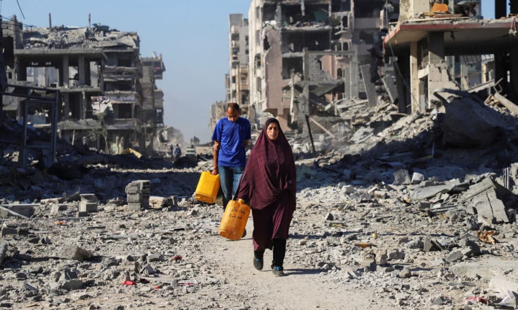 Ο Τζούμα Αλ-Σαφάντι περπατάει πάνω από τα ερείπια του κατεστραμμένου σπιτιού της οικογένειάς του στην πόλη της Γάζας. Ο Ορ είπε ότι θα χρειαστούν τουλάχιστον 30 χρόνια για να εντοπιστούν και να καθαριστούν όλες οι νάρκες και οι βόμβες στην επιφάνεια, επισημαίνοντας τα προβλήματα με την αναζήτηση στα ερείπια της Γάζας και την πιθανώς τεράστια ποσότητα εκρηκτικών που είναι κρυμμένα στο έδαφος.