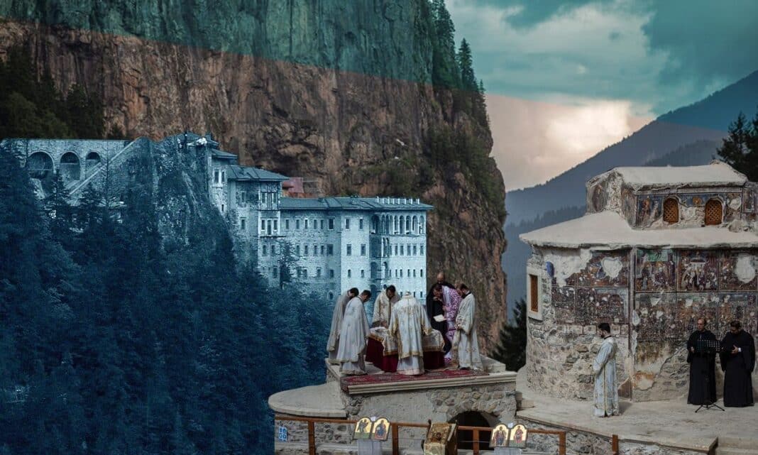 Πριν τελεστεί τελικά στις 23 Αυγούστου η Θεία Λειτουργία, οι Τούρκοι επιχείρησαν να…φτιάξουν κλίμα. Το Ινστιτούτο Ερευνών Μαύρης Θάλασσας στο Τεχνικό Πανεπιστήμιο Καραντενίζ εξέδωσε ανακοίνωση σχετικά με την ορθόδοξη λειτουργία που θα τελεστεί στη Μονή Σουμελά. Η δήλωση περιγράφει λεπτομερώς τον ιστορικό ρόλο του Οικουμενικού Πατριαρχείου, την οικουμενικότητα του οποίου δεν αναγνωρίζουν επ΄ουδενί οι Τούρκοι, και τα σημερινά του σύνορα.