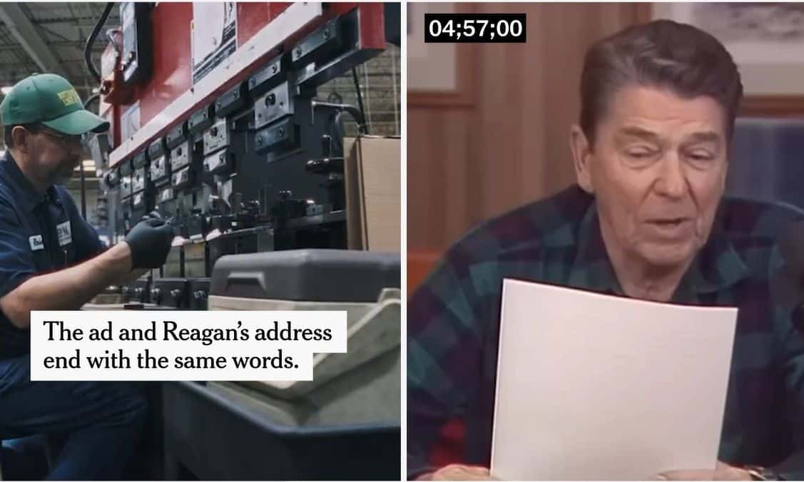 Δείτε ΕΔΩ το βίντεο των New York Times με την αντιπαραβολή της ομιλίας του Ρόναλντ Ρίγκαν με την καναδική διαφήμιση.