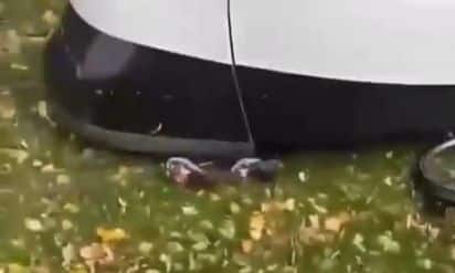 Σε ένα βίντεο που τραβήχτηκε από έναν περαστικό, διακρίνονται μόνο τα πόδια του παιδιού που προεξέχουν από το μπροστινό μέρος του τραμ.