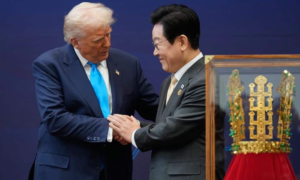 Η Νότια Κορέα υποδέχθηκε τον πρόεδρο των ΗΠΑ Ντόναλντ Τραμπ με ένα αντίγραφο χρυσού στέμματος και τον παρασημοφόρησε με το «Μεγάλο Τάγμα του Μουγκούνγκουα», το υψηλότερο παράσημο της χώρας, ανακοίνωσε το προεδρικό γραφείο. Ο Τραμπ προσγειώθηκε στη Νότια Κορέα στο τελευταίο σκέλος της περιοδείας του στην Ασία, η οποία περιελάμβανε επίσης στάσεις στη Μαλαισία και την Ιαπωνία, ενώ αναμένονται εμπορικές συνομιλίες υψηλού προφίλ με τον πρόεδρο της Νότιας Κορέας Λι Τζάε Μιουνγκ και τον Κινέζο πρόεδρο Σι Τζινπίνγκ.