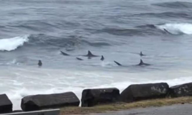 Δεκάδες καρχαρίες βγήκαν κοντά στην ακτή σε δημοφιλή παραλία σέρφινγκ στο Gold Coast, στη βορειοανατολική ακτή της Αυστραλίας, αναζητώντας τροφή.