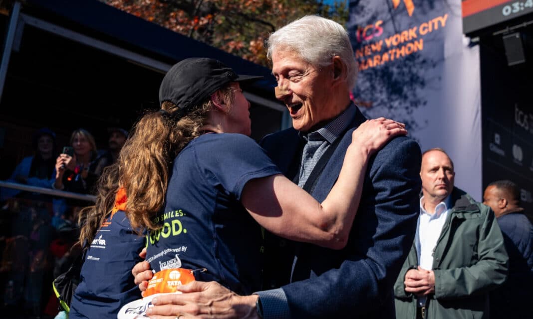 Ο 79χρονος πρώην πρόεδρος των ΗΠΑ Μπιλ Κλίντον παρουσιάστηκε στον τερματισμό του Μαραθωνίου της Νέας Υόρκης την Κυριακή (02/110 με έναν επίδεσμο στη μύτη του.