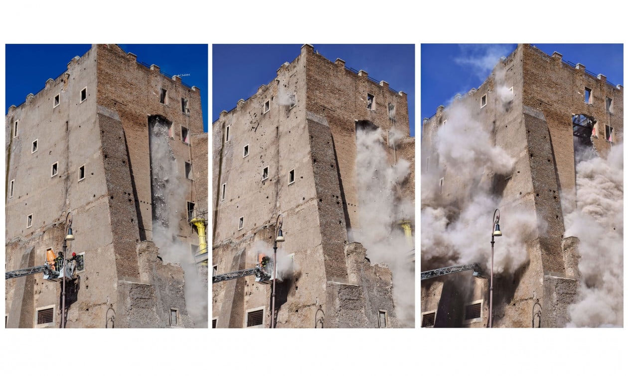 Σύμφωνα με τα μέχρι τώρα στοιχεία, πρώτα κατέρρευσε ένα στήριγμα του Πύργου των Κόμηδων, κοντά στο Κολοσσαίο – το οποίο είχε προστεθεί κατά την δεκαετία του ’30 του περασμένου αιώνα – και στην συνέχεια μια σοφίτα.