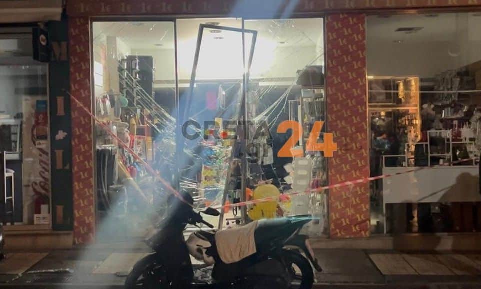 Αναστάτωση επικράτησε λίγο μετά τα μεσάνυχτα το βράδυ της Τετάρτης 12 Νοεμβρίου στο Ηράκλειο της Κρήτης καθώς ένα αυτοκίνητο έπεσε πάνω σε κατάστημα και «πέρασε» μέσα από τη βιτρίνα του, σπάζοντάς τη.