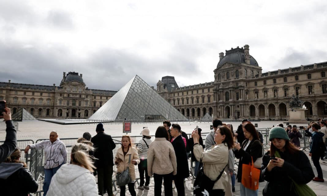 Γάλλοι αστυνομικοί έξω από το μουσείο του Λούβρου μετά την κινηματογραφική ληστεία στις 19 Οκτωβρίου