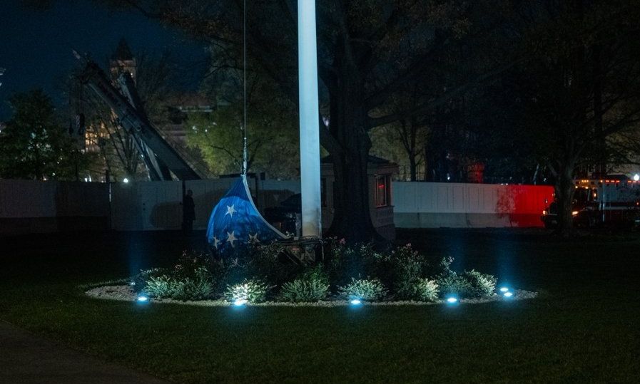 Η αμερικανική σημαία βρίσκεται στο κάτω μέρος ενός ιστού σημαίας στο Νότιο Γκαζόν του Λευκού Οίκου , στην Ουάσιγκτον