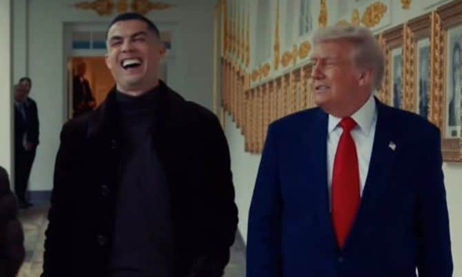Στο βίντεο με την απαραίτητη μουσική υπόκρουση Κριστιάνο Ρονάλντο και Ντόναλντ Τραμπ περπατούν δίπλα δίπλα, με το σχόλιο της ανάρτησης να λέει: «Δύο κατσίκια».