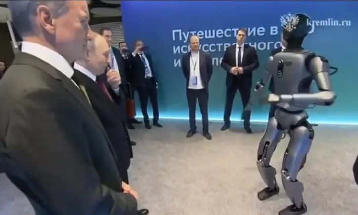 Κατά τη διάρκεια της επίδειξης, την οποία πρόβαλε η κρατική τηλεόραση, ο επικεφαλής του Κρεμλίνου εμφανίζεται να στέκεται απέναντι από το ανθρωποειδές ρομπότ, το οποίο λέει στον Ρώσο πρόεδρο, προτού αρχίσει να χορεύει, ότι είναι το αγαπημένο του τραγούδι.