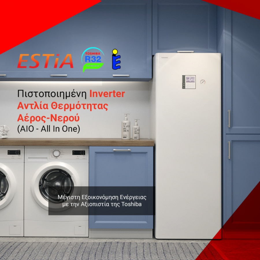 Η Toshiba ESTIA R32 διατίθεται σε συμπαγή «All-in-One» μορφή με ενσωματωμένο δοχείο ζεστού νερού περίπου 210 lt ή με επίτοιχη υδραυλική, απλοποιώντας σημαντικά την εγκατάσταση. Το σύστημα ελέγχου της προσφέρει τη δυνατότητα δημιουργίας μίας ή δύο ζωνών άνεσης και επιτρέπει συνδυασμό με διαφορετικούς τύπους τερματικών σωμάτων, όπως ενδοδαπέδιο σύστημα, σώματα καλοριφέρ ή τερματικές μονάδες νερού (FCU).