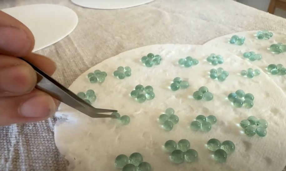 Χρησιμοποιώντας έναν μικρό κλίβανο κουζίνας, η Jones εκμεταλλεύεται την κρυσταλλική δομή του τζαμιού ασφαλείας των αυτοκινήτων για να μετατρέψει γρήγορα τα θραύσματα σε σκουλαρίκια με φλοράλ μοτίβα, συνήθως σε πράσινο χρώμα.