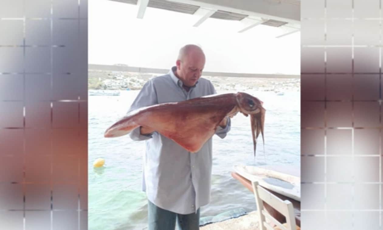Δύο μεγάλα καλαμάρια βάρους 17 κιλών το καθένα έκαναν την εμφάνισή τους στον κόλπο του Ορνού της Μυκόνου.