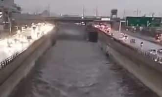 Ο Κηφισός καταγράφηκε σε βίντεο που έχει κυκλοφορήσει στα μέσα κοινωνικής δικτύωσης να έχει φουσκώσει ανησυχητικά στο ύψος της Λαχαναγοράς.