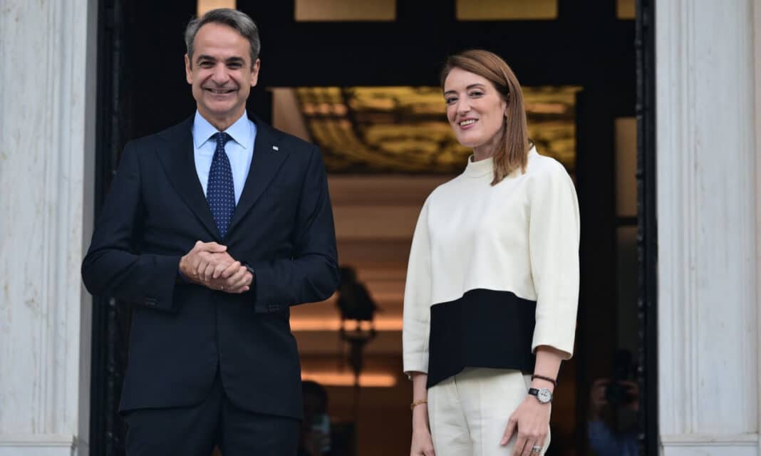 Ο πρωθυπουργός Κυριάκος Μητσοτάκης συναντήθηκε στο Μέγαρο Μαξίμου με την πρόεδρο του Ευρωπαϊκού Κοινοβουλίου Ρομπέρτα Μετσόλα.