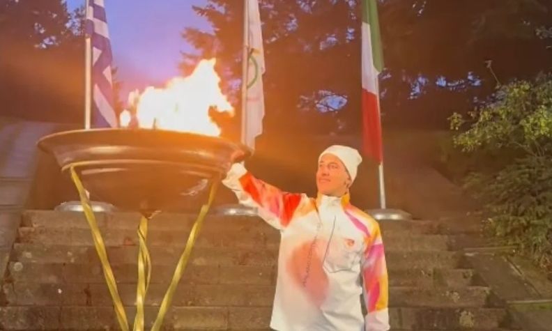 Η τελετή κορυφώθηκε με την εντυπωσιακή αφή του βωμού από τον Απόστολο Αγγελή, τρεις φορές Olympian στη χιονοδρομία