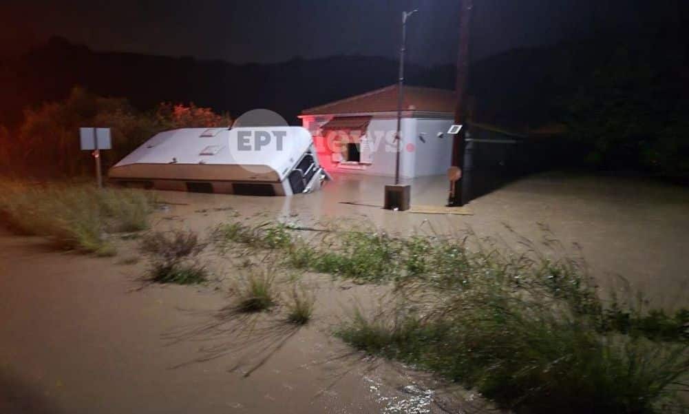 Δύο Γερμανοί τουρίστες κινδύνευσαν όταν το κατάλυμά τους, το όχημά τους και ένα τροχόσπιτο κατακλύστηκαν από τα νερά
