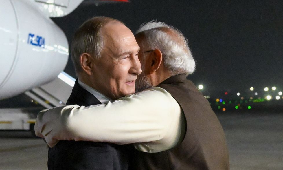 Ο Ινδός ηγέτης υποδέχτηκε τον Πούτιν με μια αγκαλιά και χειραψία καθώς περπατούσε στο κόκκινο χαλί μετά την άφιξή του σε αεροδρόμιο κοντά στο Νέο Δελχί την Πέμπτη για τη διήμερη επίσκεψη. Ο Μόντι αργότερα φιλοξένησε τον Ρώσο πρόεδρο σε ένα ιδιωτικό δείπνο στην κατοικία του.