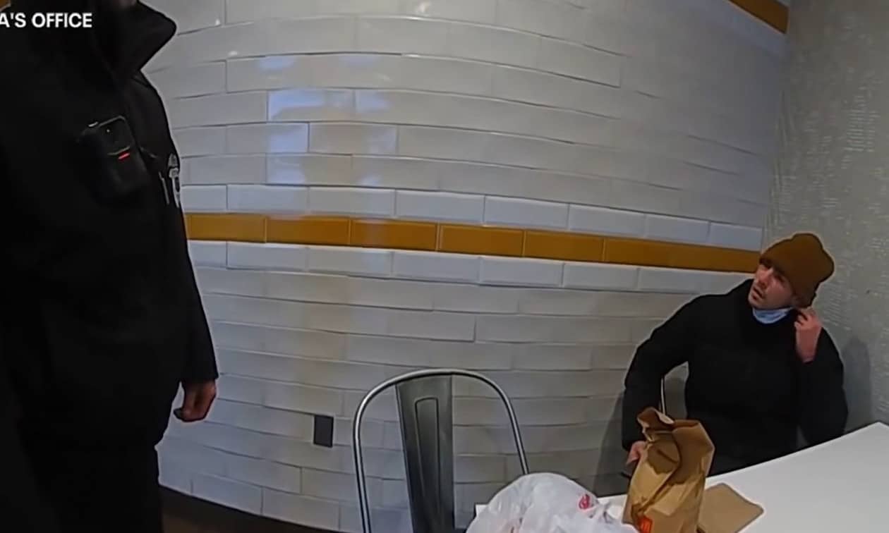 Στο υλικό φαίνεται ο 27χρονος να βρίσκεται μέσα σε ένα εστιατόριο McDonald’s στο Άλτουνα της Πενσιλβανίας, όταν οι αστυνομικοί τον προσεγγίζουν και του ζητούν να δηλώσει το όνομά του.