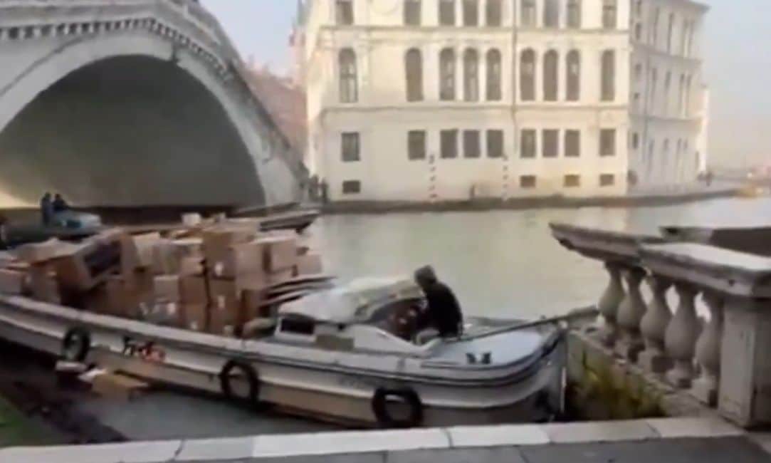 Σε βίντεο που μετέδωσαν ιταλικά μέσα ενημέρωσης, διακρίνεται ένα σκάφος φορτωμένο με δέματα να προσκρούει με ορμή σε μαρμάρινο στηθαίο κοντά στο ιστορικό κτίριο Fondaco dei Tedeschi. Ακολούθως, η γυναίκα αποβιβάζεται και τρέπεται σε φυγή.