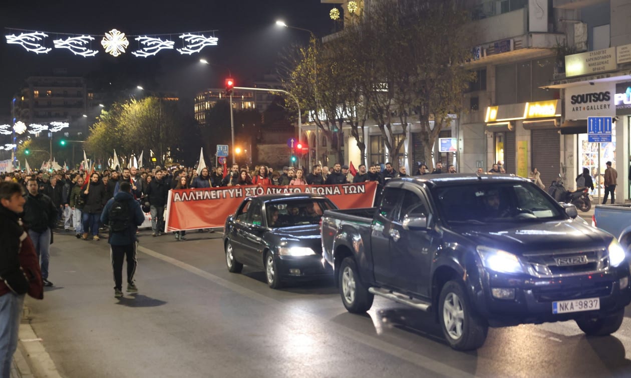 Πορεία διαμαρτυρίας ενάντια στον κρατικό προϋπολογισμό, ο οποίος ψηφίσθηκε σήμερα στη Βουλή, πραγματοποιήθηκε το απόγευμα στο κέντρο της Θεσσαλονίκης.
