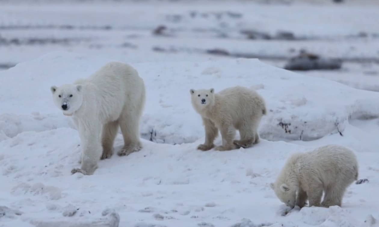 Η πεντάχρονη μητέρα αρκούδα και τα 10 με 11 μηνών αρκουδάκια της παρατηρήθηκαν και καταγράφηκαν με κάμερα κατά τη διάρκεια της ετήσιας μετανάστευσης των πολικών αρκούδων κατά μήκος του δυτικού κόλπου Χάντσον, κοντά στο Τσέρτσιλ της Μανιτόμπα, μια πόλη γνωστή για τον πληθυσμό των πολικών αρκούδων (η πόλη διαθέτει ακόμα και «φυλακή» για πολικές αρκούδες, στην οποία παραμένουν αρκούδες που έχουν προκαλέσει προβλήματα μέχρι να μεταφερθούν σε άλλη περιοχή).