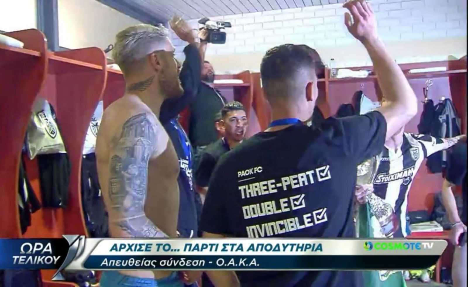 Το… γιόρτασαν αμέσως μετά το σφύριγμα της λήξης του τελικού, εντός αγωνιστικού χώρο, αλλά στη συνέχεια οι παίκτες του ΠΑΟΚ μετέφεραν στο “πάρτι” τους στα αποδυτήρια του ΟΑΚΑ.