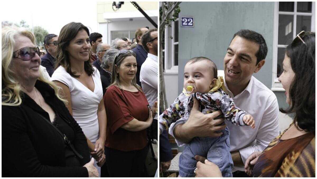 Ένα ζευγάρι με τρίδυμα έσπευσε να τον χαιρετίσει και ο κ. Τσίπρας είπε ότι είναι «ηρωίδα η μητέρα».