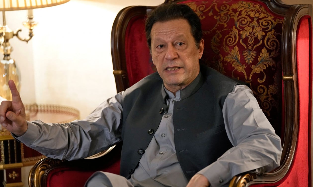 Ο πρώην πρωθυπουργός του Πακιστάν Ιμράν Χαν μιλάει κατά τη διάρκεια συνέντευξης Τύπου στο Ισλαμαμπάντ, στις 23 Απριλίου 2022.