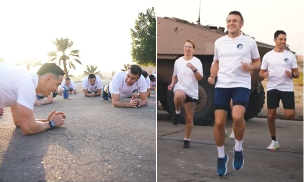 Όπως κάνει από το 2017, ο επικεφαλής του γαλλικού κράτους θέλησε να προσφέρει ένα δείπνο στους στρατιωτικούς που έχουν αποσπαστεί μακριά από την πατρίδα τους, ενώ, δεν δίστασε να γυμναστεί και μαζί τους.