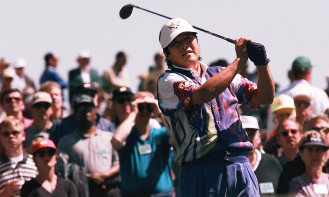 Ο Ιάπωνας Jumbo Ozaki κατά τη διάρκεια του τελικού γύρου του Τουρνουά Μάστερς στο Augusta National Golf Club στην Augusta της Τζόρτζια, στις 13 Απριλίου 1997.