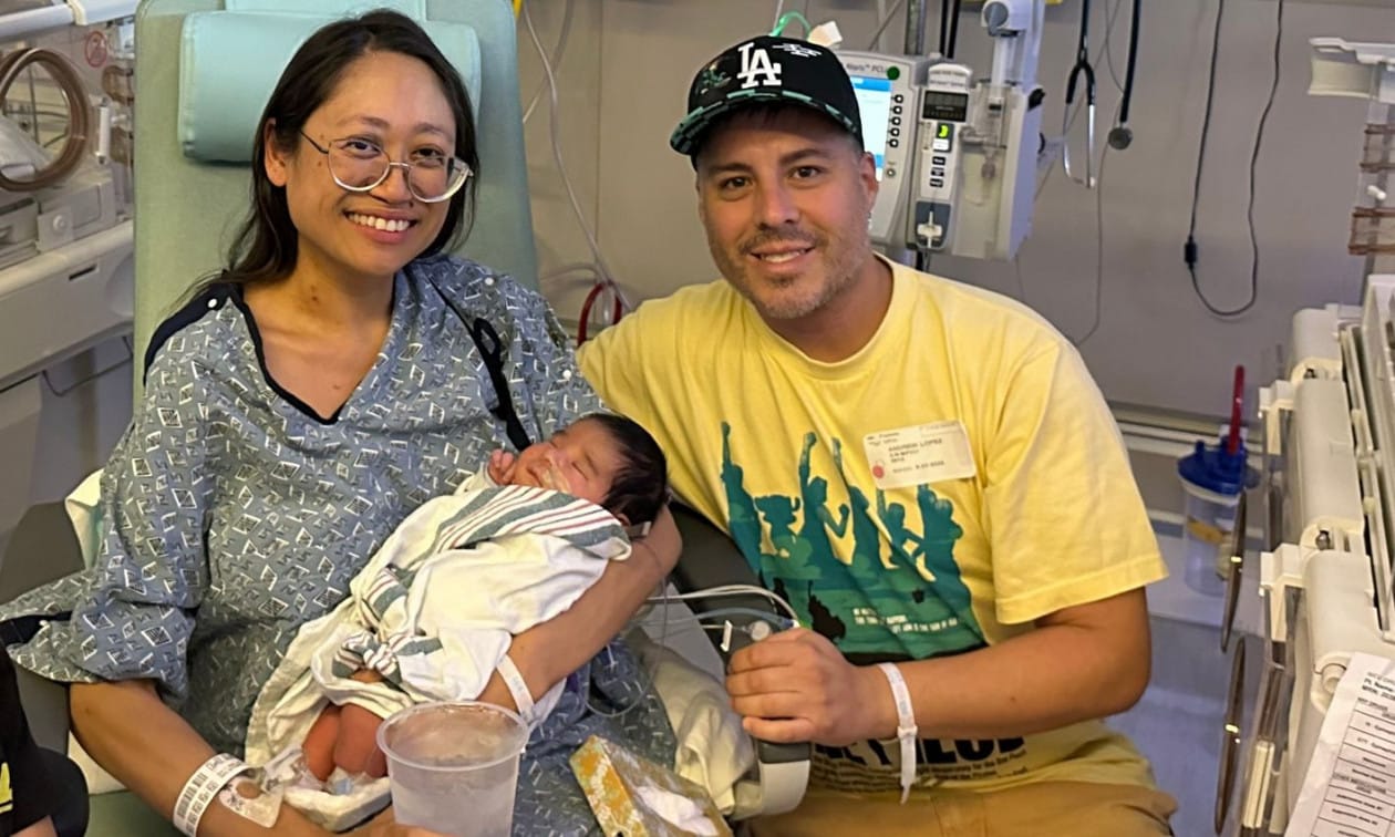 H Suze Lopez, o γιος της Ryu, και ο σύζυγός της Andrew Lopez σε νοσοκομείο της Καλιφόρνια τον Αύγουστο του 2025.