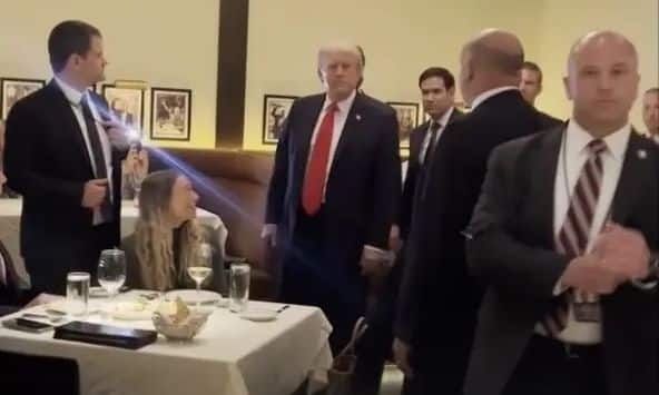 Βίντεο από το συμβάν δείχνει άνδρες της ασφάλειας να επικοινωνούν με ασυρμάτους, ενώ ο Τραμπ πλησιάζει στο τραπέζι του και υποδεικνύει την απομάκρυνση των διαδηλωτών, οι οποίοι φώναζαν: «Free DC. Free Palestine. Ο Τραμπ είναι ο Χίτλερ της εποχής μας».
