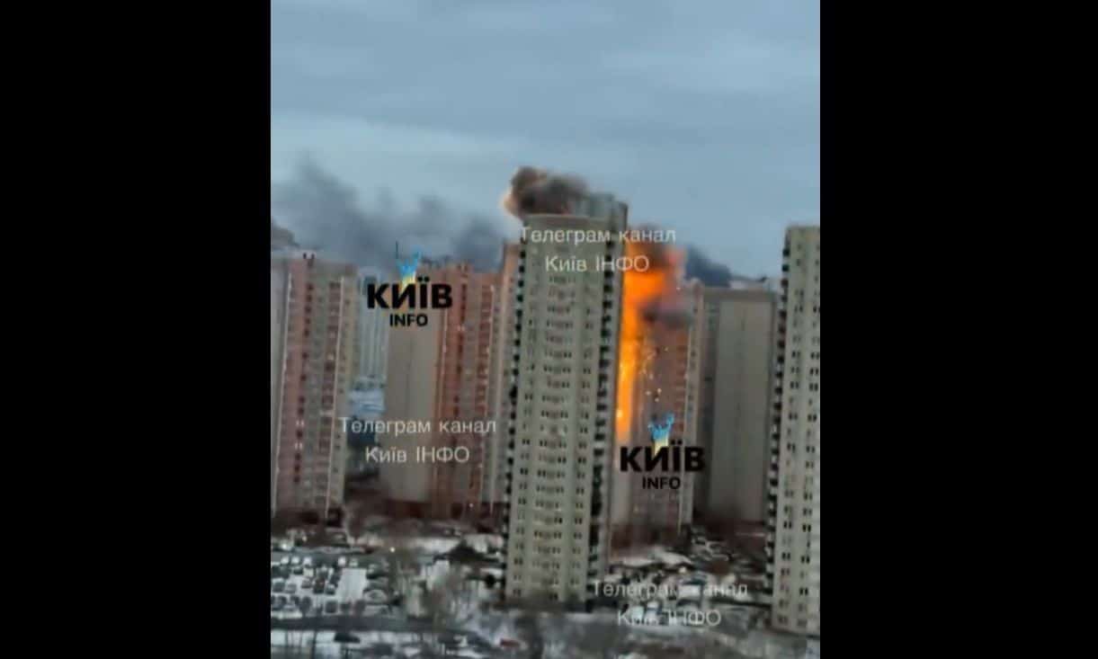Η στιγμή που ένας πύραυλος χτύπησε πολυκατοικία στο Κίεβο, κατά την διάρκεια της επίθεσης της Ρωσίας εναντίον της Ουκρανίας το βράδυ της Παρασκευής, καταγράφηκε σε βίντεο.