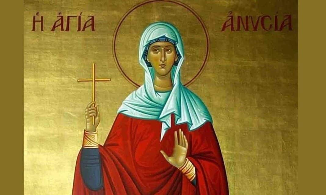 Σύμφωνα με τον συναξαριστή, η Αγία Ανυσία, έζησε στα χρόνια του αυτοκράτορα Διοκλητιανού (298 μ.Χ.). Καταγόταν από τη Θεσσαλονίκη και ήταν θυγατέρα γονέων ευσεβών και πολύ πλουσίων. Όταν πέθαναν οι γονείς της, η Ανυσία στάθηκε κυρία του εαυτού της. Ούτε τα πλούτη που κληρονόμησε τη μέθυσαν, ούτε η ορφάνια της την παρέσυρε. Αλλά με φρόνηση και εγκράτεια, προσπαθούσε πάντα να μαθαίνει «τι εστίν ευάρεστον τω Κυρίω». Τι δηλαδή, είναι ευχάριστο και ευπρόσδεκτο στον Κύριο.