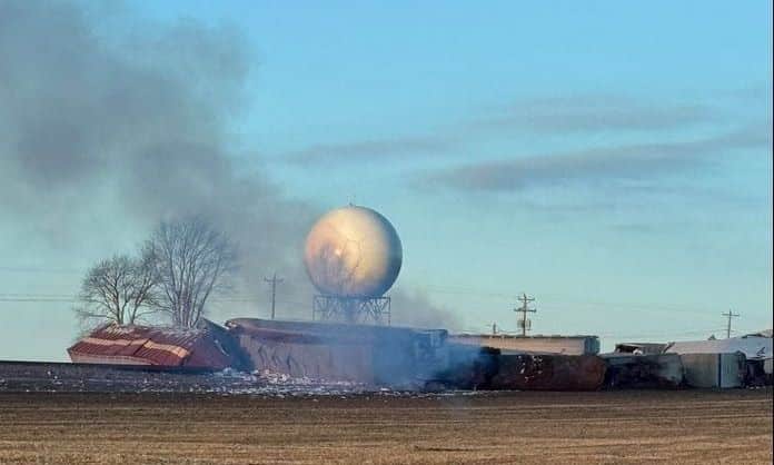Ένα από τα 30 βαγόνια που εκτροχιάστηκαν – το οποίο μετέφερε υγρό θείο, που χρησιμοποιείται ευρέως σε λιπάσματα – τυλίχθηκε στις φλόγες. Οι αρχές συνέστησαν στους κατοίκους της περιοχής να παραμείνουν στα σπίτια τους και να κρατήσουν κλειστά τα παράθυρα λόγω του τοξικού νέφους.