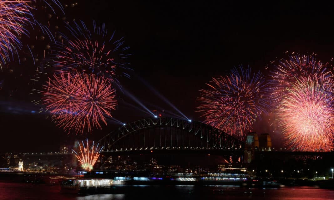 Στη συνέχεια, η Αυστραλία υποδέχτηκε το νέο έτος υπό την αυστηρή επιτήρηση. Στο Σίδνεϊ, το πρώτο μεγάλο και διεθνώς γνωστό σόου πυροτεχνημάτων πάνω από τη γέφυρα του λιμανιού και τη Όπερα πραγματοποιήθηκε υπό αυξημένα μέτρα ασφαλείας και με στιγμές σιωπής, ενθυμούμενη τα πρόσφατα τραγικά γεγονότα στην παραλία Μπόνταϊ, τον Δεκέμβριο.