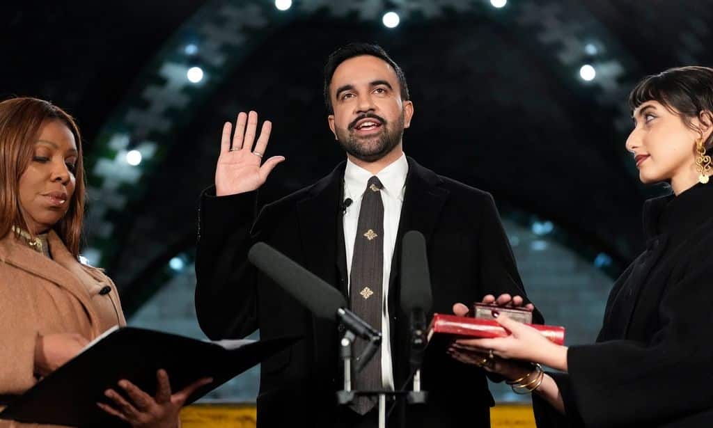 Νέος Δήμαρχος, από τα πρώτα λεπτά του 2026 είναι επισήμως ο Ζόραν Μαμντάνι, η ορκωμοσία του οποίου έγινε συμβολικά στον ιστορικό σταθμό του μετρό Δημαρχείου, με τη σύζυγό του Ράμα Ντουβάτζι να στέκεται στο πλευρό του.