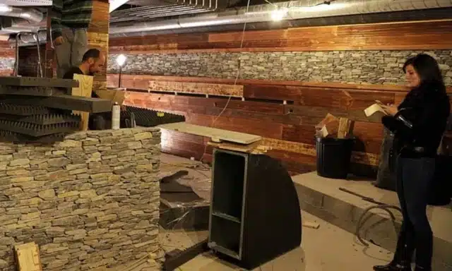 Και αυτές οι φωτογραφίες, που εντοπίστηκαν σε λογαριασμό στο Facebook τον οποίο είχε δημιουργήσει το γαλλικό ζευγάρι το 2015, καταγράφουν τη DIY ανακαίνιση του μπαρ και δείχνουν ότι η οροφή είχε τότε απογυμνωθεί πλήρως, πριν τοποθετηθεί το αφρώδες υλικό ως τελική στρώση.