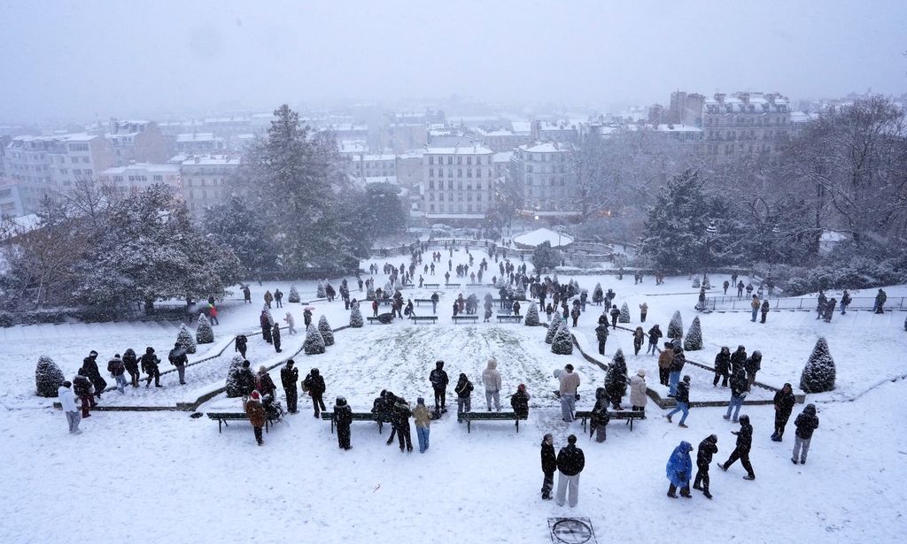 Η σφοδρή κακοκαιρία που πλήττει τη Γαλλία προκάλεσε προβλήματα σε μεταφορές και υποδομές, με ακυρώσεις πτήσεων και κυκλοφοριακό χάος σε πολλές περιοχές. Η χιονισμένη Μονμάρτη, ωστόσο, πρόσφερε μια σπάνια εικόνα του Παρισιού, μετατρέποντας για λίγες ώρες έναν από τους πιο εμβληματικούς λόφους της πόλης σε αυτοσχέδια «πίστα σκι».