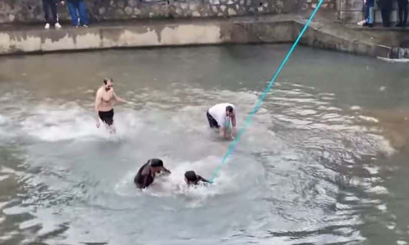 Σύμφωνα με το trikalaopinion.gr, στη δεύτερη ρίψη του σταυρού, οι συμμετέχοντες έπεσαν στα νερά με ένταση, προσπαθώντας να τον ανασύρουν.