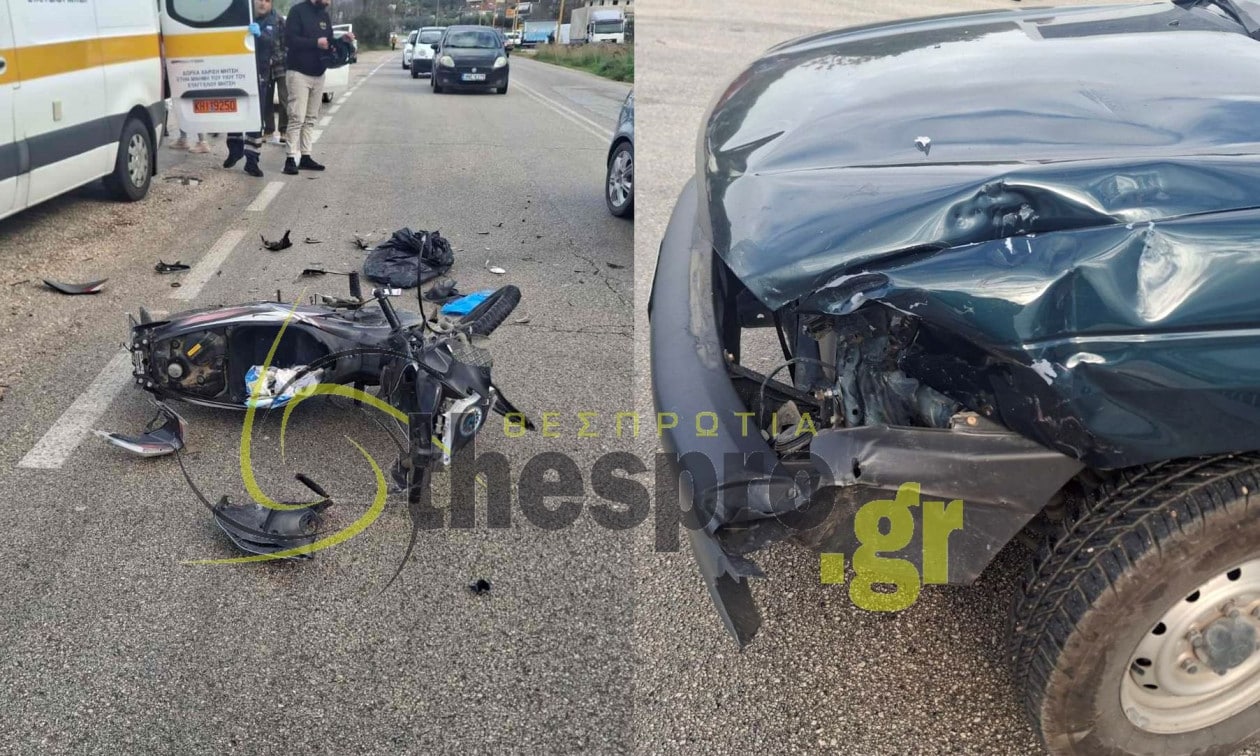 Σύμφωνα με το τοπικό μέσο thespro.gr, το ατύχημα σημειώθηκε κοντά στον οικισμό Εθνικής Αντίστασης, όταν ηλικιωμένος οδηγός Ι.Χ. έκλεισε τον δρόμο σε οδηγό μηχανής, ο οποίος κινούνταν κανονικά στη λωρίδα κυκλοφορίας του.