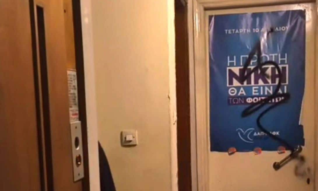 Οι δράστες πέταξαν τρικάκια και έγραψαν συνθήματα στους τοίχους, εκφράζοντας τη συμπαράστασή τους στις αγροτικές κινητοποιήσεις.