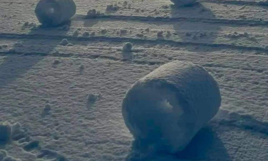 Ένα σπάνιο φυσικό φαινόμενο που ονομάζεται χιονοδρομικοί κύλινδροι, οι οποίοι σχεδόν μοιάζουν με μπάλες σανού φτιαγμένες από χιόνι, έχουν εντοπιστεί στα νησιά.