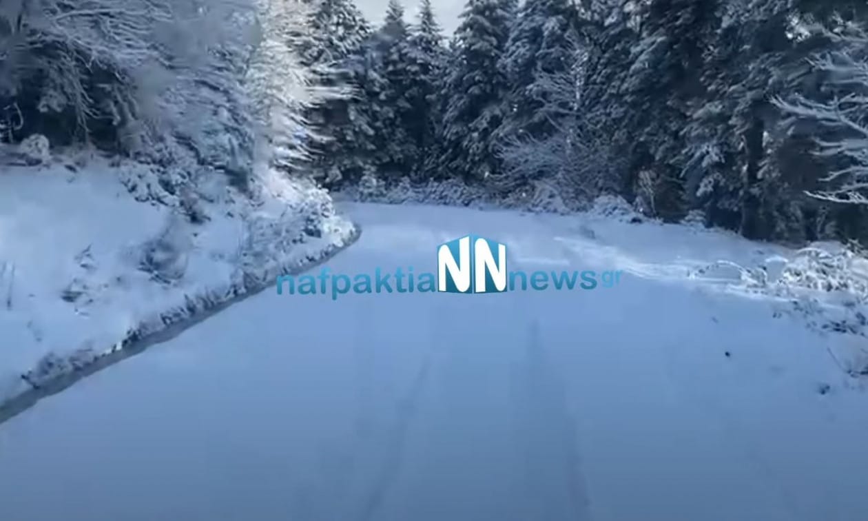 Στα λευκά «ντύθηκε» η ορεινή Ναυπακτία – Βίντεο